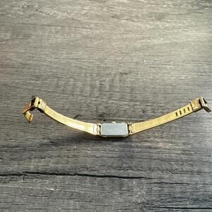 Vintage Lady Elgin Watch gold tone Tank Black Dial Stainless Steel