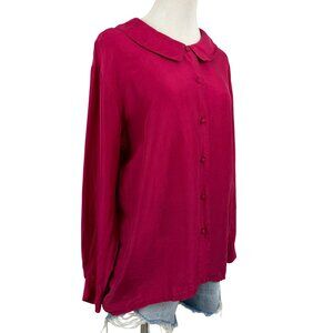 Vintage Lady Footlocker Top Women's Medium Silk Button Up Blouse Long Sleeve 80s
