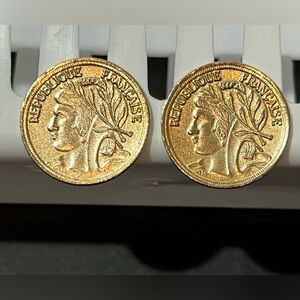 Vintage Lady France Francaise Republique Coin Earrings Pierced