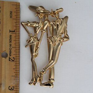 Vintage Lady & Gentleman Stylish Elegant Couple Gold Tone Brooch LR98 signed