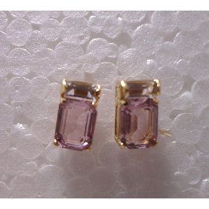 Vintage Lady Grace Pierced Earrings Gold Toned w/Austrian Lilac & Clear Crystals