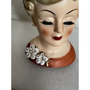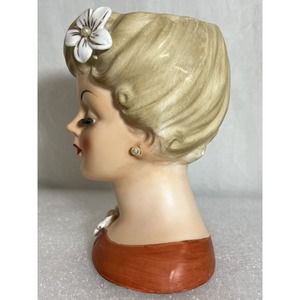 Vintage Lady Head Vase, Enesco E-2188, Blonde, Burnt Orange Top