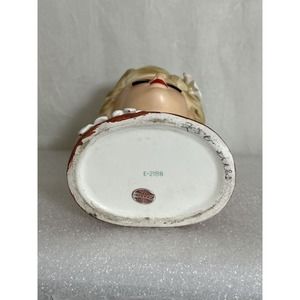 This Lovely Vintage Enesco E-2188 lady head vase features a beautiful lady dressed in orange accented with white and gold.