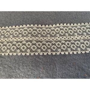 This vintage lace ribbon evokes an air of nostalgia, reminiscent of delicate handcrafted pieces from a bygone era. The eggshell hue adds a timeless charm, making it a lovely addition to sewing projects, crafts, or home decor, bringing a touch of elegance and sophistication.