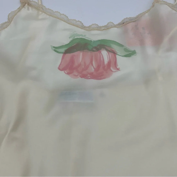 This elegant vintage Lady Lynne camisole and slip skirt set is a rare find! Featuring a soft ivory color with delicate lace trim and hand-painted floral details, this two-piece set is crafted from 100% nylon for a silky, lightweight feel. Perfect for collectors or anyone who loves timeless vintage lingerie.