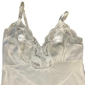 Vintage Lady Lynne white Lace Full Slip Dress Size M Nylon Lingerie Pinup Style