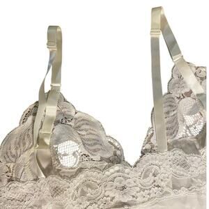 This vintage Lady Lynne full slip is a stunning piece of classic lingerie. Made from silky smooth white nylon, it features elegant floral lace trim at the neckline and hem, with sheer lace cup detailing for a feminine, romantic look.