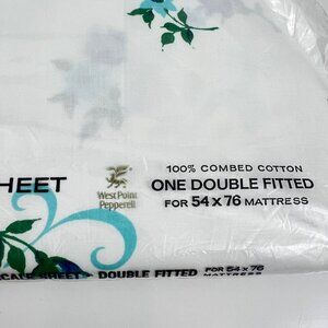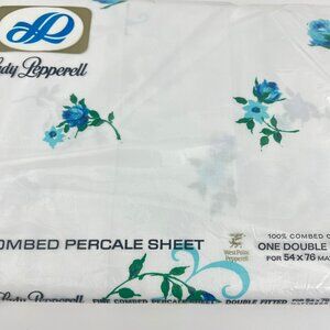 Vintage Lady Pepperell Blue Rose Double Fitted Sheet Percale 100% cotton
