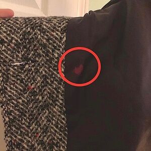 EUC with noted spot in last photo…discoloration on inside lining, not noticeable when buttoned up