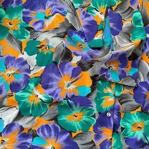 Vintage Lady Winn Necktie Bow Button Up Long Sleeve Bold Floral Print Blouse 1X. NO SIZE TAG - please use measurements for fit, we believe this to be a 1X