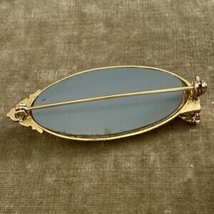 Vintage Lady Woman In Mirror Brooch Gold Tone Pin Oval Glamour Art Deco Nouveau