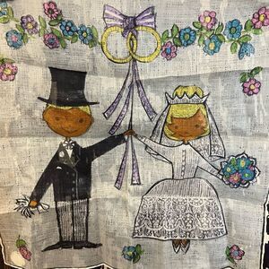 Vintage Lady Heritage Mid Century Wedding Day handkerchief. Bride and Groom.