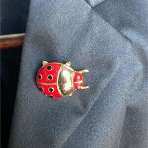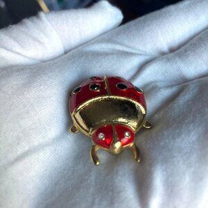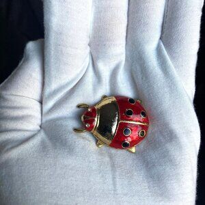 Vintage Ladybug Brooch Pin Gold Tone Enamel Rhinestone 1.5" Whimsical Retro