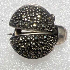 A charming sterling silver ladybug Beetle brooch Pin with marcasite detailing, adding a vintage touch to outfits or collections.