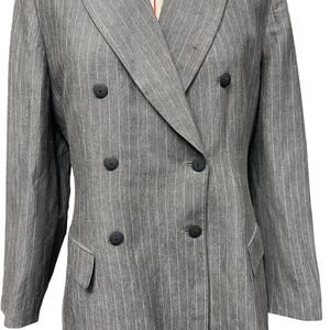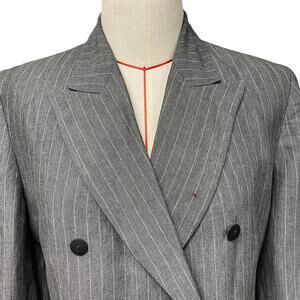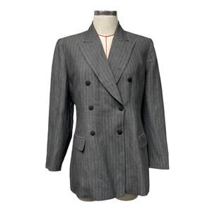 Vintage Lafayette 148 Womens Grey Pinstripe Double Breasted Blazer Jacket