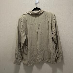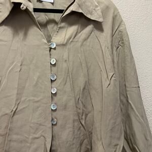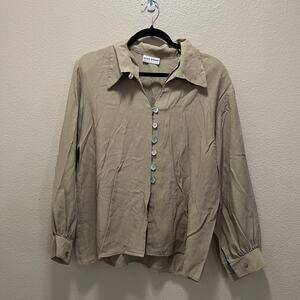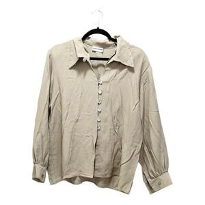 Vintage Alice Stuart Laggenlook Linen Button Down Shirt Beige Long Sleeve Collared Blouse Size Medium