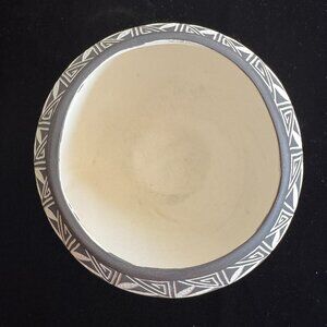 This is a striking example of cross-Pueblo influence; while no firm documentation exists, the initials may possibly reference potters Lolita Concho (Acoma) and Gladys Paquin (Laguna) — both important figures in their pottery traditions.