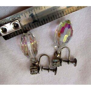 Elegant vintage earrings with dazzling faceted crystal beads featuring an aurora borealis finish. Screw-back design ensures a secure and comfortable fit.