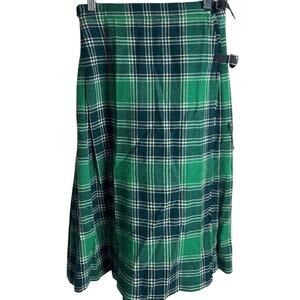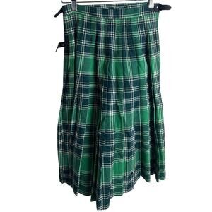 Vintage Laird-Portch Of Scotland Small Pure New Wool Green Plaid Skirt
