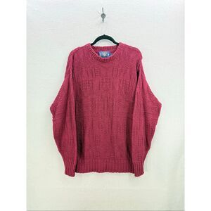 Vintage Lake Harmony Mens Red Knit Cotton Long Sleeve Pullover Sweater Medium