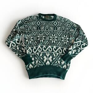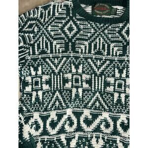 Vintage Lake Harmony Rowing Club Knit Sweater Green White Geometric USA Small