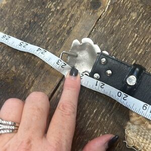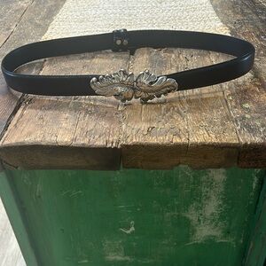 In excellent vintage condition Black leather with filigree leaf buckle H15