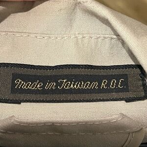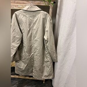 1970s. Vintage piece. Good condition. Beige. Liner can be removed. 2 pockets up front. Clean. Button down. P2P 22 inches. Length 41 inches.
