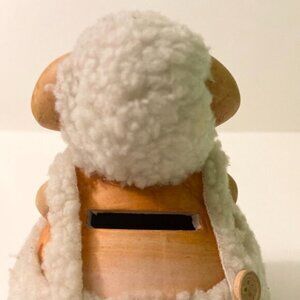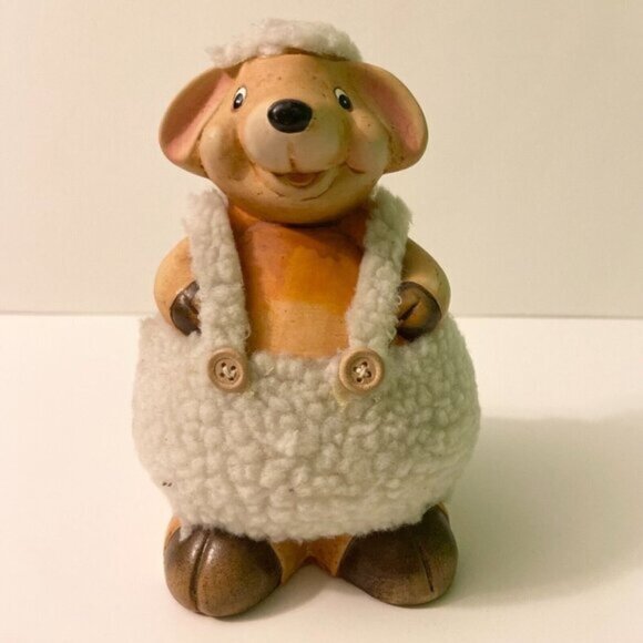 Vintage Lamb Coin Bank with Outfit 6 Inch Tall Ceramic Sheep Figurine