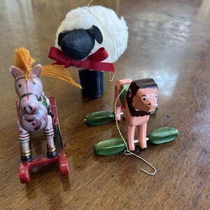 Vintage Lamb, Lion & Rocking Horse Christmas ornaments