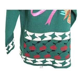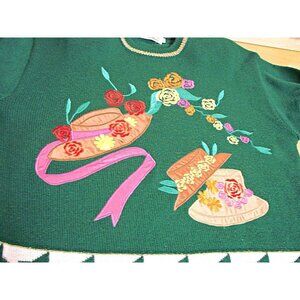 Vintage Lambelle Green Bright Floral Hat Design Tunic Sweater Wool Blend Sz M