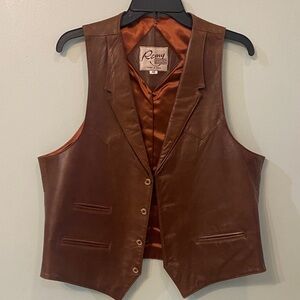 Vintage western Unisex Beautiful reddish brown senna color buttery soft leather vest with three pockets ,size men’s 42 , no discoloration no scratches in EUC