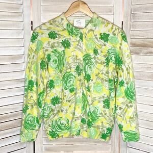 Vintage Lambswool Angora Floral Pearl Button Cardigan 40 M British Colony