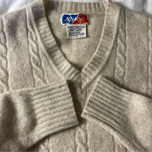 Vintage Lambswool Blend Sweater M Oatmeal V Neck Academia Normcore 70’s 80’s