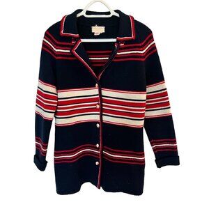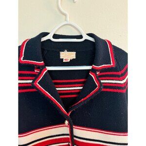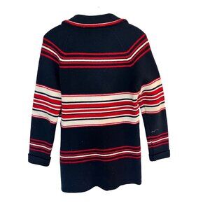 Vintage Lambswool Cardigan Sweater Hand Loomed Striped Navy Red White Sz M