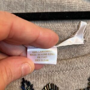 Lambs Wool Sweater and Cardigan, Vintage, Hand Beaded at neckline of sweater and at base/back of cardigan. Cardigan is lined throughout except sleeves. Light to medium grey in color. Beautiful bead work.
