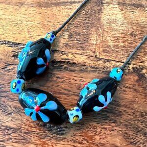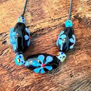 Vintage Lamp Glass Daisy Beads On Waxed Cording.
