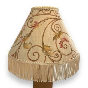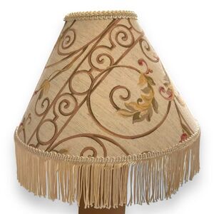 Vintage Lamp Shade Victorian Art Deco Style Fringe Scroll Floral Leaves 8.5"