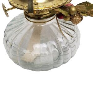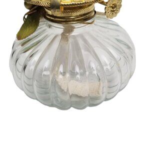 This charming Lamplight Farms oil lamp brings warm, nostalgic lighting to any space. The ribbed glass base catches and reflects light beautifully, while the brass burner mechanism adds authentic vintage appeal. Whether you're creating cozy ambiance for everyday living, preparing for emergency lighting, or styling a cottagecore tablescape, this functional piece delivers both beauty and practicality. The decorative floral wreath adds a touch of Victorian-era charm that works perfectly with farmhouse, coastal grandmother, or vintage-inspired interiors.