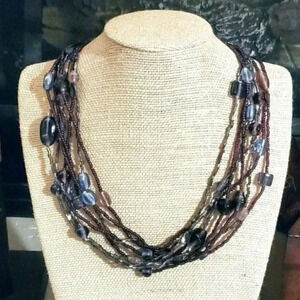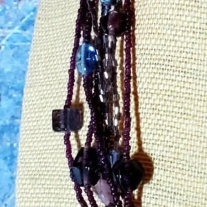 Vintage Lampwork Purple Shades Glass Beads Multistrand Handcrafted Necklace