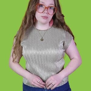 Vintage Lana Lee Gold Crinkle Top Short Sleeve, M