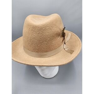 Vintage Lancaster 100% Wool Tan Brown Fedora Hat W/ Feather Accent Made In USA