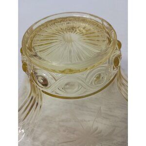 Vintage Lancaster Yellow Depression Glass Serving Bowl Etched Flower Ruffle Edge Brand: Lancaster Type: Serving Bowl Pattern: Jubilee Featured Refinements: Etched, Depression glass, Ruffle edge, Vintage, Decorative, Rare Material: Glass Modified Item: No Condition: See photo for minor damage on the bottom Measurements: Height 3.75" Width 6.75" We want you to have a positive experience. Please examine the pictures carefully before purchasing! Thank You!