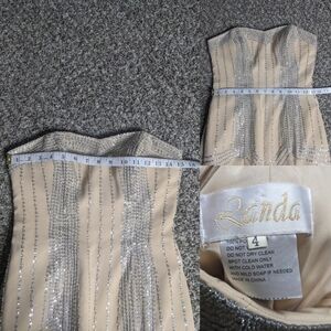 Vintage Landa cream beaded sequin prom evening special occasion dress 4. Mini dress under maxi sheer overlay slits. Small rip and a few minor stains at the bottom (see photo). Strapless. Stunning Great Gatsby, elegant style. Color is closest to the hanging photos.