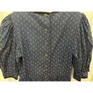 Vintage Landhause Oktoberfest Dirndl Dress Size 40 German Floral Blue Buttons