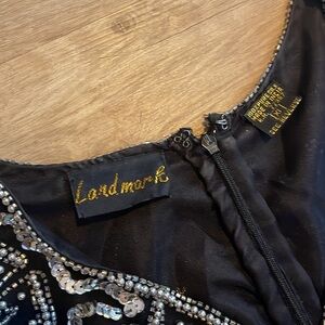 Vintage Landmark Dress Short Sleeve V-Neck Embellished Silk Dress XL has shoulder pads. TTS.