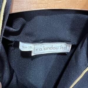 Vintage Landou Black Dress Size 10 Gold Trim Long Sleeve Midi