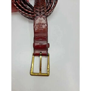 Vintage Lands' End Brown Leather Belt Men's Size 42 Braided Woven Brass Buckle