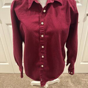 Vintage Lands' End Button Up Burgundy Maroon Shirt Size 12 Women's 100% Cotton