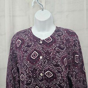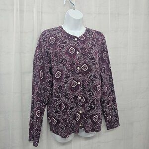 Vintage Lands' End Cardigan Sweater Purple Floral Boho Cotton Preppy Casual L