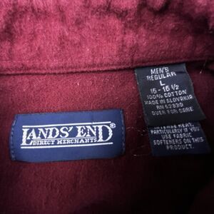 Vintage Lands End Chamois Flannel Shirt Men L Red Work Long Sleeve Chest Pockets